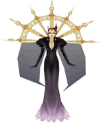 Put it all together and add some make-up! I know next to nothing about make-up, but I managed to get a decent look using a few simple items. Use a good foundation and powder to get a smooth complexion, since no women in video games have dry skin, oily skin, birth marks, acne, spotting, or any other physical imperfection, I used a basic black/neutral eyeshadow pallet, and a purple pallet to do the eyes. No liner at all. The veins I used a white cream make-up (I had it left over from Kefka last year!) to draw them with what was I think a lip liner brush. Then I used a small eyeshadow brush to add some shading with black and purple. I don't really know enough about make-up to explain what I did, sorry. Just get a picture of Edea in front of you and start experimenting. Finish it off with some black mascara and purple lipstick.